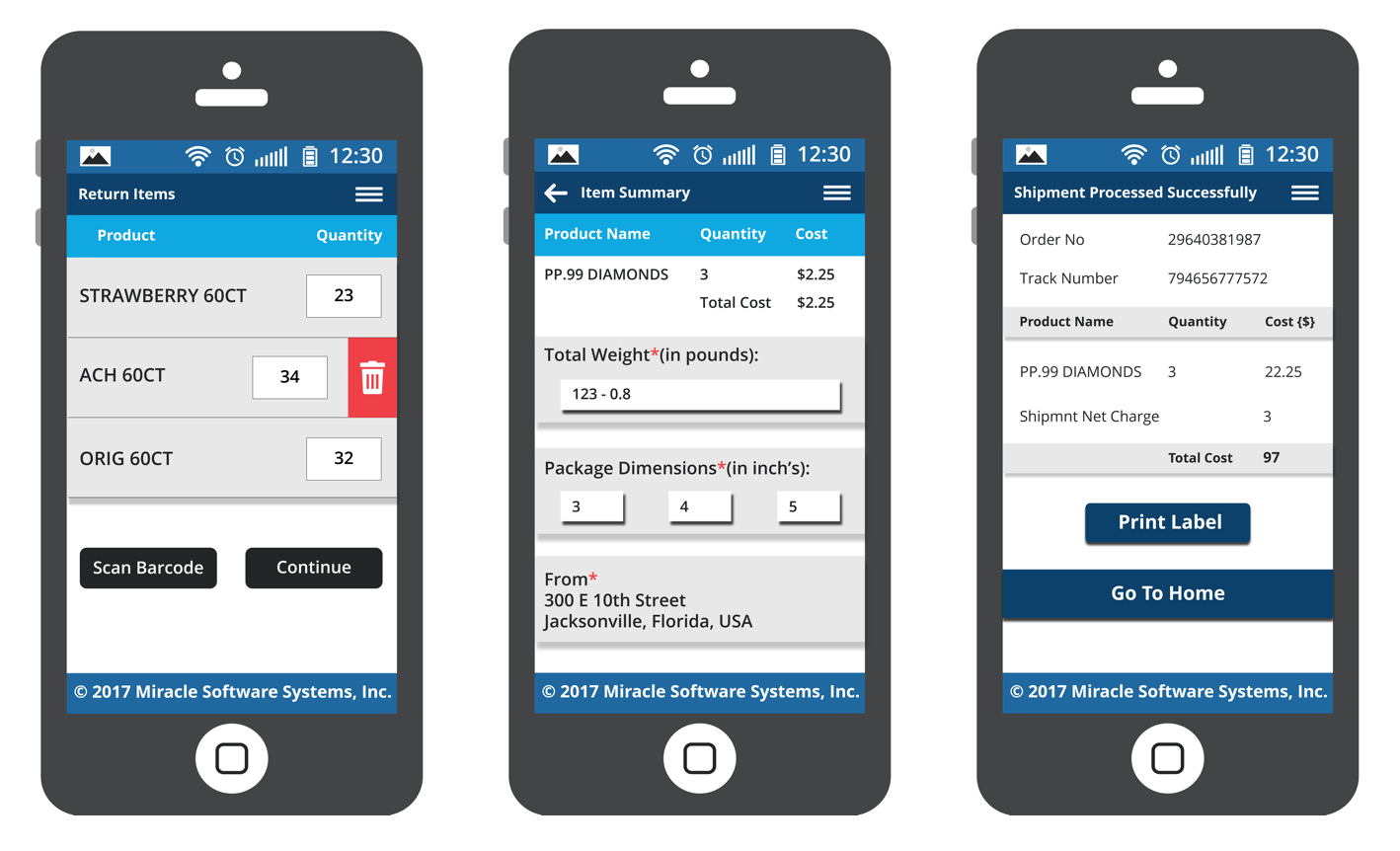 Miracle's Mobility Team and the customer together came up with the design for a mobile app that can be used by the stores to track all merchandise returns and ship them directly using a shipping provider.